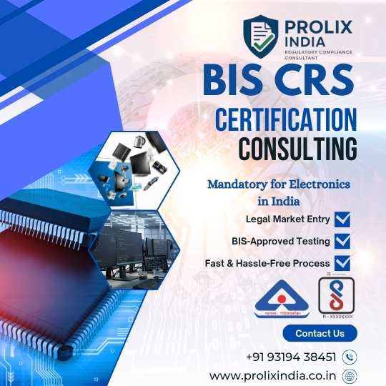 Prolix India is one of the leading BIS Consultant in India , helping manufacturers obtain their BIS licences hassle-free. The BIS CRS Scheme plays a crucial role in regulating electronic products and ensuring that they meet Indian safety standards. Through BIS CRS Registration and CRS Certification, manufacturers confirm that their products comply with regulatory requirements and maintain reliable performance.
